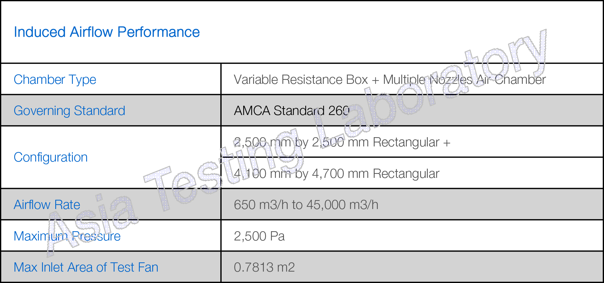 Test Standard: ANSI/AMCA Standard 260-20.
