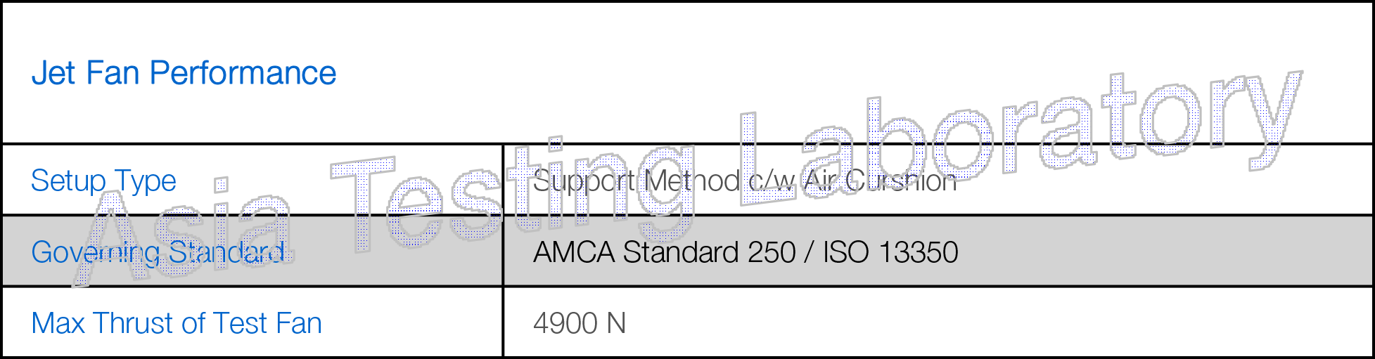 Test Standard: ANSI/AMCA Standard 250-22,ISO 13350:2015.